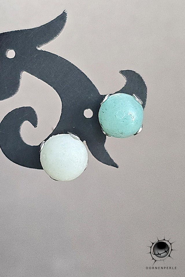 Erleben Sie die beruhigende Farbkraft des Amazonits direkt an Ihrem Ohr. Diese eleganten Ohrstecker fangen die sanften Blau- und Grüntöne kühler Gebirgsflüsse ein und verleihen Ihrem Look eine natürliche, frische Note.