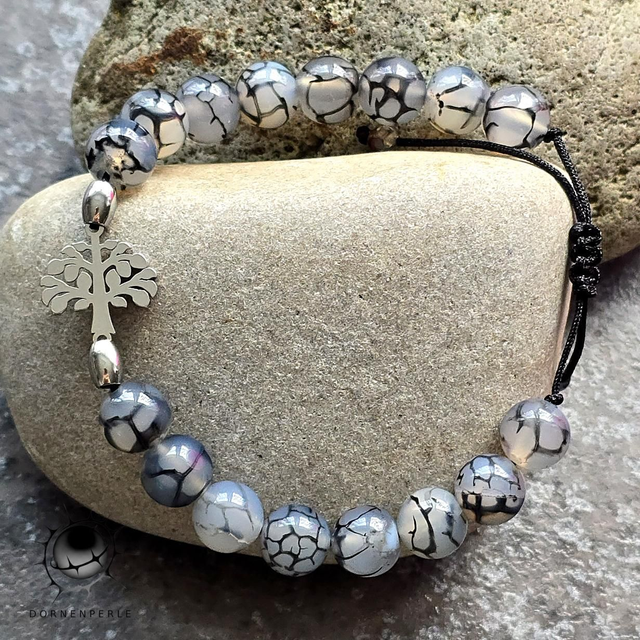 1x Crack-Achat Armband mit Lebensbaum-Symbol.