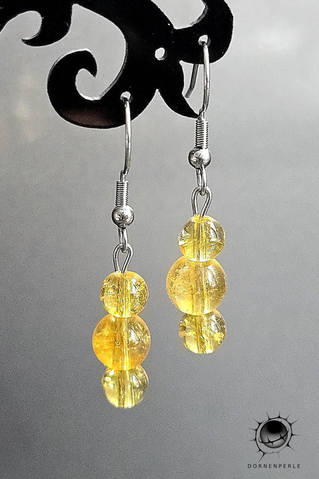 Diese eleganten Ohrhänger aus leuchtendem Citrin bringen Licht und positive Energie in dein Gesicht. Die Kombination aus zwei unterschiedlich großen, strahlend gelben Perlen fängt das Licht bei jeder Bewegung ein und setzt einen warmen, lebendigen Akzent.