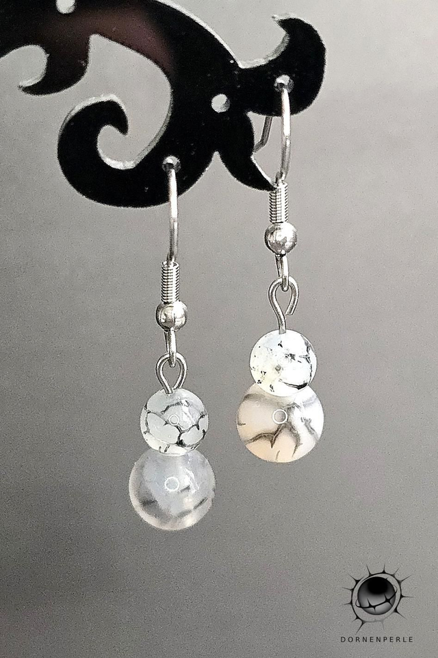 Der Crack Achat schwarz an einem Ohrhänger aus Edelstahl.