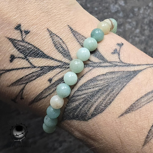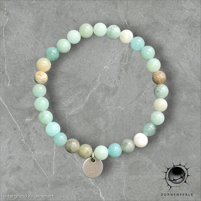 Tauche ein in die sanfte Energie des Amazonits. Dieses elastische Perlenarmband ist mehr als nur ein Accessoire – es ist ein Symbol für innere Ruhe, Harmonie und den freien Fluss der Kommunikation. Die kühlen Farben des Steins erinnern an das klare Wasser ferner Lagunen und helfen dabei, den Geist zu besänftigen und die Intuition zu stärken.
