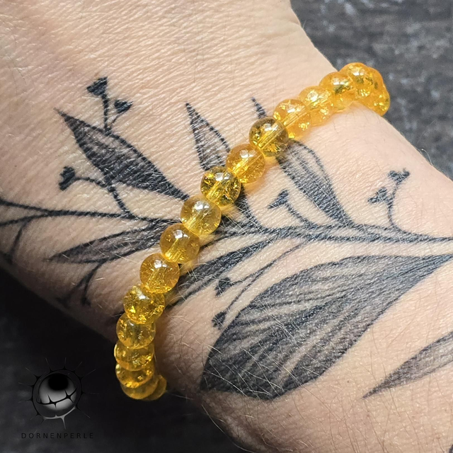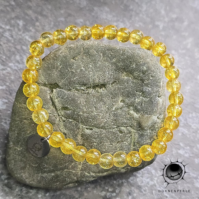 Die klaren, sonnengelben Perlen sind auf ein elastisches Band aufgezogen, was ein müheloses Anlegen ermöglicht.