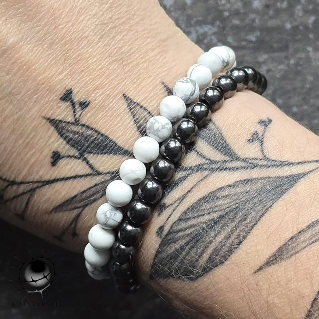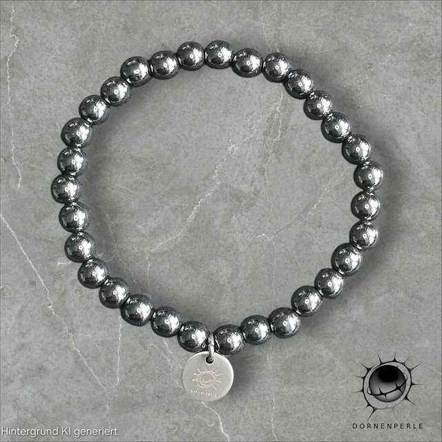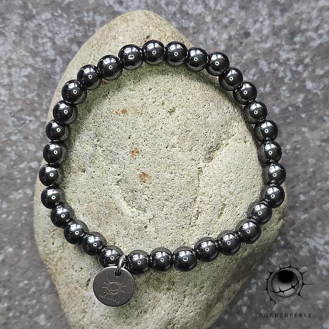 ​Dieses Armband aus Hämatit Perlen besticht durch seinen markanten, metallischen Glanz in tiefem Anthrazit. Die kühle Schwere der Steine vermittelt sofort ein Gefühl von Stabilität und Präsenz an deinem Handgelenk.