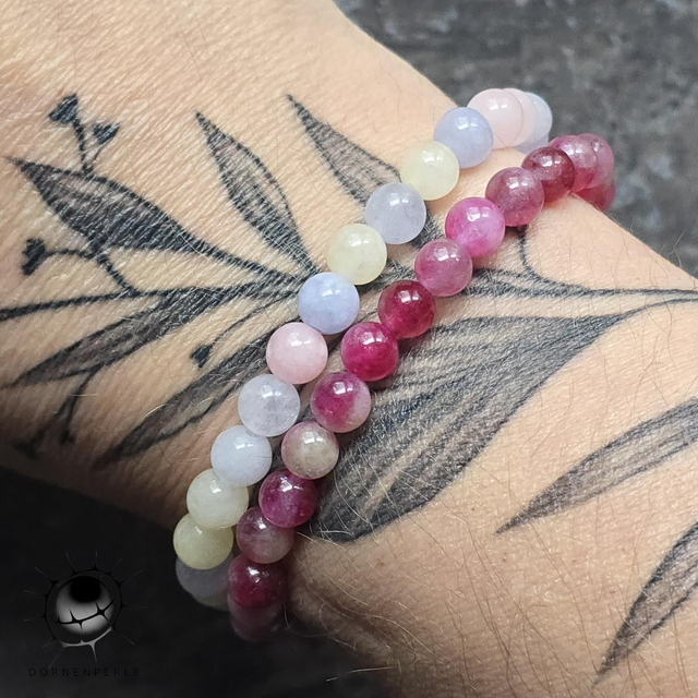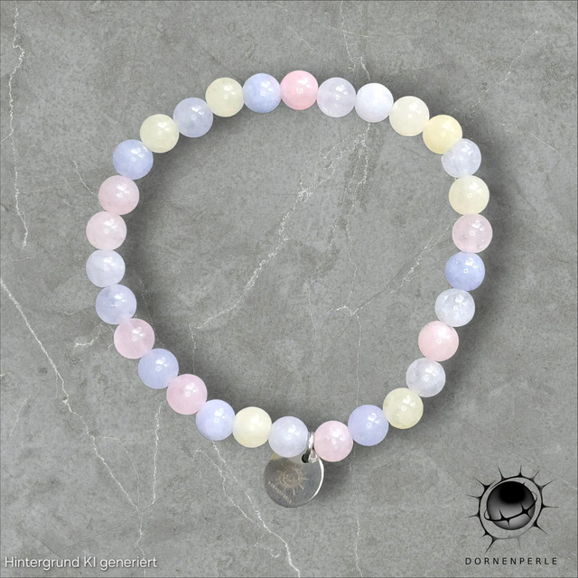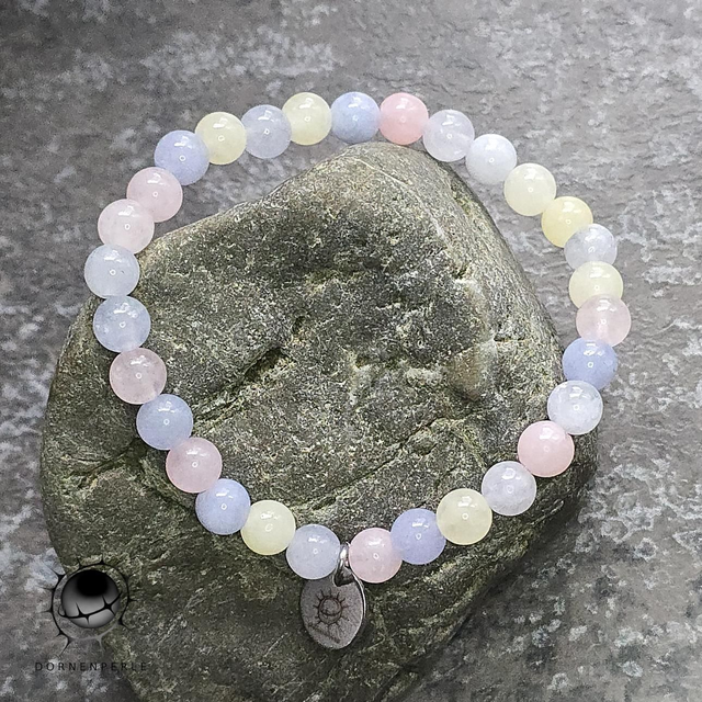Lass dich von der sanften Magie dieses handgefertigten Armbands aus echtem Morganit verzaubern. Die Perlen schimmern in einer harmonischen Palette aus zartem Rosé, sanftem Pfirsich und kühlem Hellblau. Diese subtilen Farben spiegeln die Reinheit und Vielschichtigkeit der Natur wider.