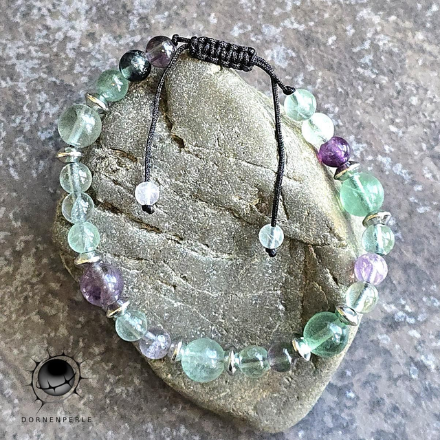 Die zarten Grün- und Violettnuancen der Natursteine machen jedes Armband zu einem absoluten Unikat – so einzigartig wie Ihre eigene Aura.