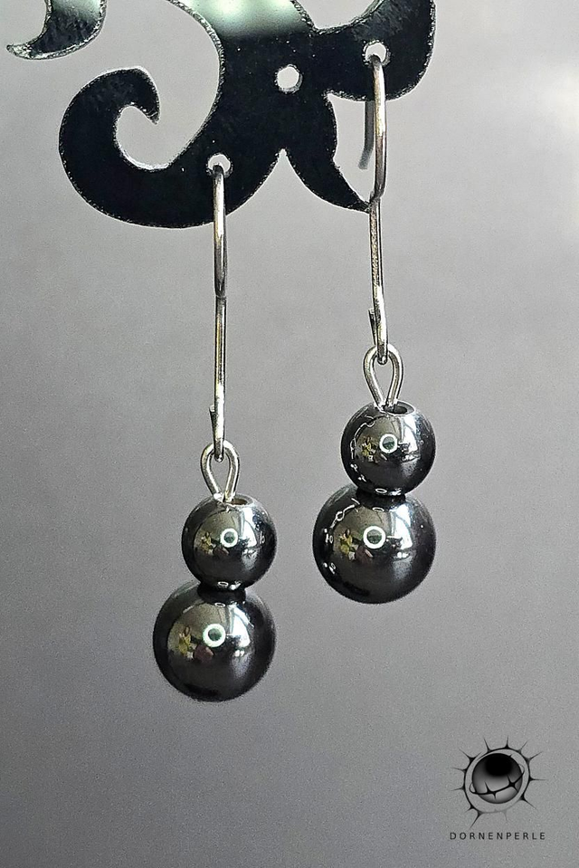 Setze ein klares Statement mit diesen zeitlosen Ohrhängern aus hochwertigem Hämatit. Die zwei unterschiedlich großen, tiefschwarz glänzenden Perlen fangen das Licht auf subtile Weise ein und verleihen jedem Outfit eine edle, mystische Note. Durch ihr schlichtes Design sind sie der ideale Begleiter für den Alltag sowie für besondere Anlässe.