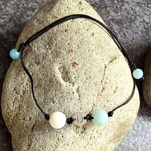 1x Initialen Amazonit-Armband (Buchstabe D)