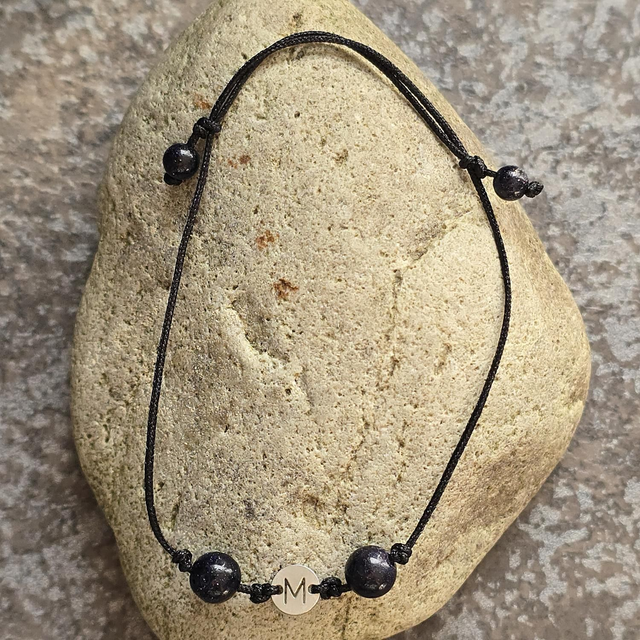 1x Armband „Blauer Sandstein“ mit Initial-Charm „M“