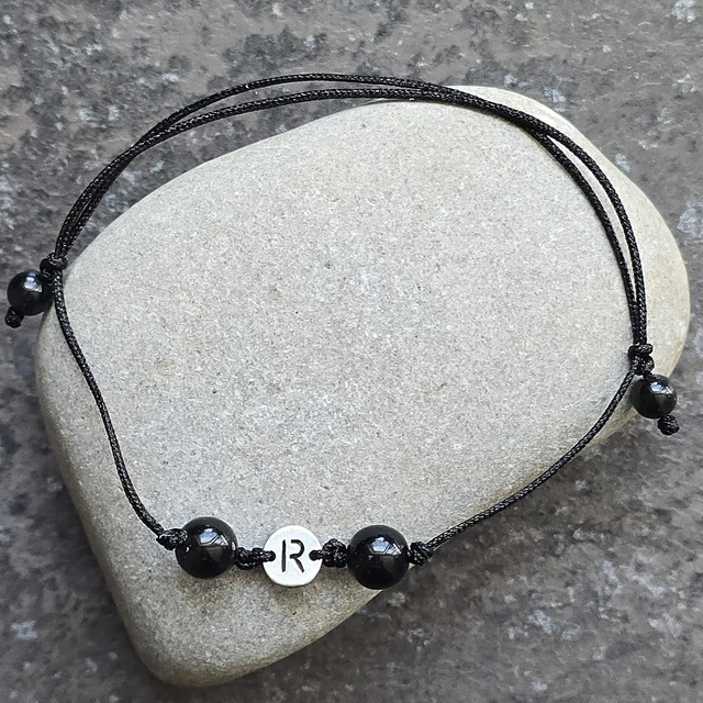 ​1x Obsidian-Armband mit Initial-Charm "R"