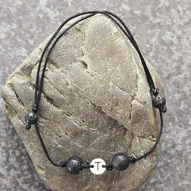1x Lavastein-Armband mit Initial "T"