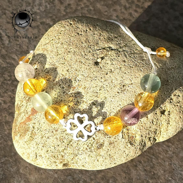 Dieses handgefertigte Armband vereint die warme Energie der Sonne mit der Klarheit der Natur. Ein filigranes Vierklee-Element aus hochwertigem Edelstahl bildet das Herzstück des Designs und symbolisiert Glück, Hoffnung und Zuversicht. Die Kombination aus sanft schimmernden Edelsteinen macht dieses Schmuckstück zu einem täglichen Begleiter für positive Vibes.
