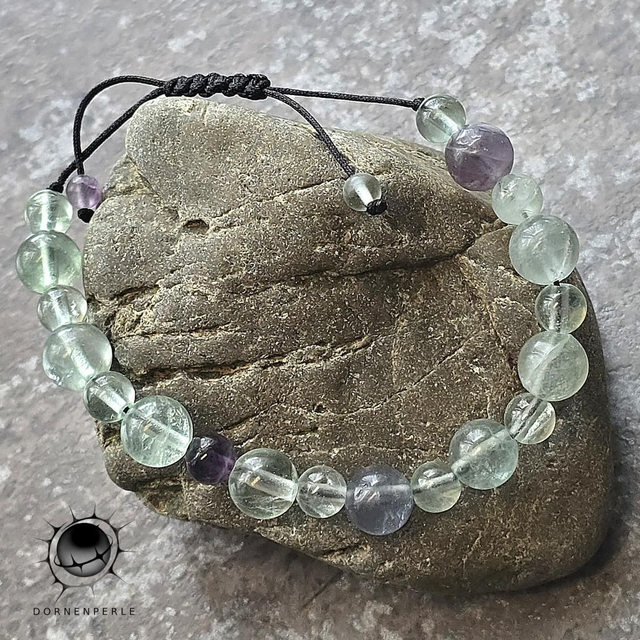Dieses zarte, handgefertigte Armband besticht durch die natürliche Schönheit des grünen Fluorits. Die transparenten bis sanft mintgrünen Perlen wirken wie eingefrorenes Quellwasser und verleihen dem Schmuckstück eine leichte, beruhigende Ästhetik. Das schlichte schwarze Textilband betont dabei die Leuchtkraft der Steine.