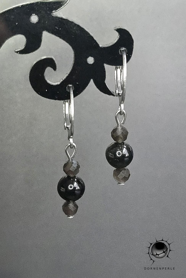 Diese handgefertigten Creolen besticht durch das faszinierende Zusammenspiel verschiedener Oberflächenstrukturen. Während die klassisch runden Obsidian-Perlen durch ihren tiefschwarzen, spiegelglatten Glanz überzeugen, fangen die präzise facettierten Obsidian-Elemente das Licht ein und verleihen dem Design ein subtiles, edles Funkeln. Ein zeitloser Ohrschmuck, das mystische Tiefe mit moderner Eleganz verbindet.