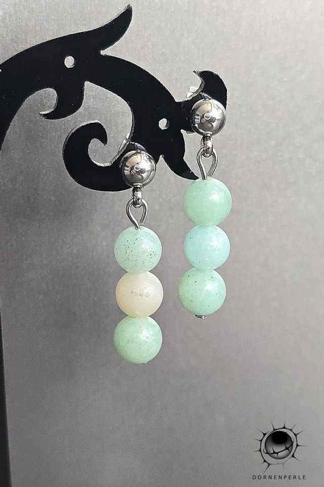 Diese handgefertigten Ohrhänger mit echtem Amazonit (6mm) bestechen durch ihre sanften Grün- und Türkistöne, die jedes Gesicht zum Strahlen bringen.