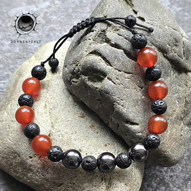 1x Edelstein-Armband (Roter Achat, Hämatit, Lava)