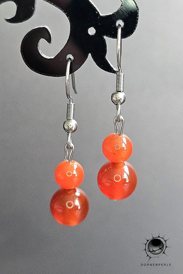 Diese stilvollen Ohrhänger setzen leuchtende Akzente und bringen die warme, vitale Energie des roten Achats direkt in dein Gesicht. Das minimalistische Design betont die natürliche Schönheit und die intensive Farbtiefe der polierten Edelstein-Perlen.