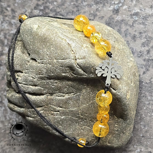 Bringe Licht in deinen Alltag mit dem Armband „Sonnenkraft“. Die strahlenden, honiggelben Citrin-Perlen leuchten wie eingefangene Sonnenstrahlen an deinem Handgelenk. Im Zentrum steht ein kunstvoll gearbeiteter Lebensbaum aus hochwertigem Edelstahl, der als zeitloses Symbol für Wachstum, Kraft und die Verbindung zwischen Himmel und Erde dient.