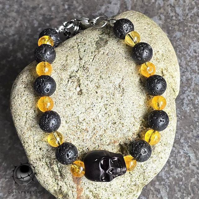 Was für eine herrliche Kombination. Der leuchtende Citrin und das Licht saugende Lavastein mit deinem schwarzen Skull.